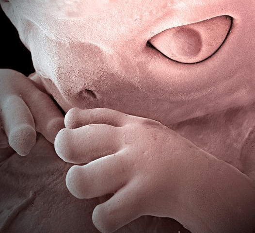 An electron microscope image of a human fetus (8 weeks, with a length of just 3cm).