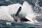 “Fabulous Killer Whale watching at Sumburgh Head and Grutness this afternoon, with a pod ‘surfing’ and jumping in the swell. The seal in the photo clinging onto the rocks for dear life I think did survive!”